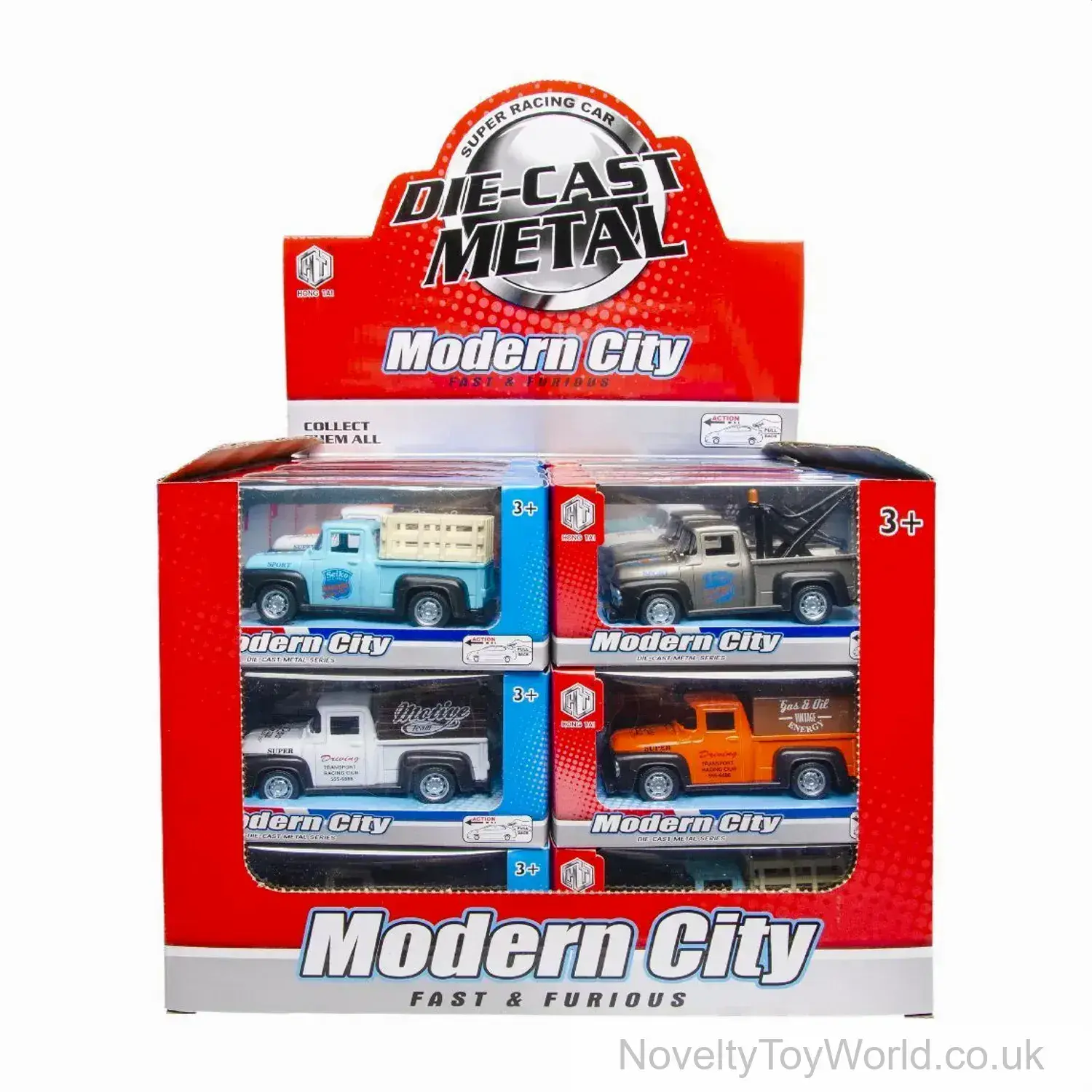 Diecast model of a 1950s-style American pickup truck. Pull-back action for movement. Made from a mix of metal and plastic parts. Comes boxed in window packaging. 4 different colours and designs supplied in the mix. Suitable for children aged 3 and up. Box measures 14.5cm x 6cm x 7cm.