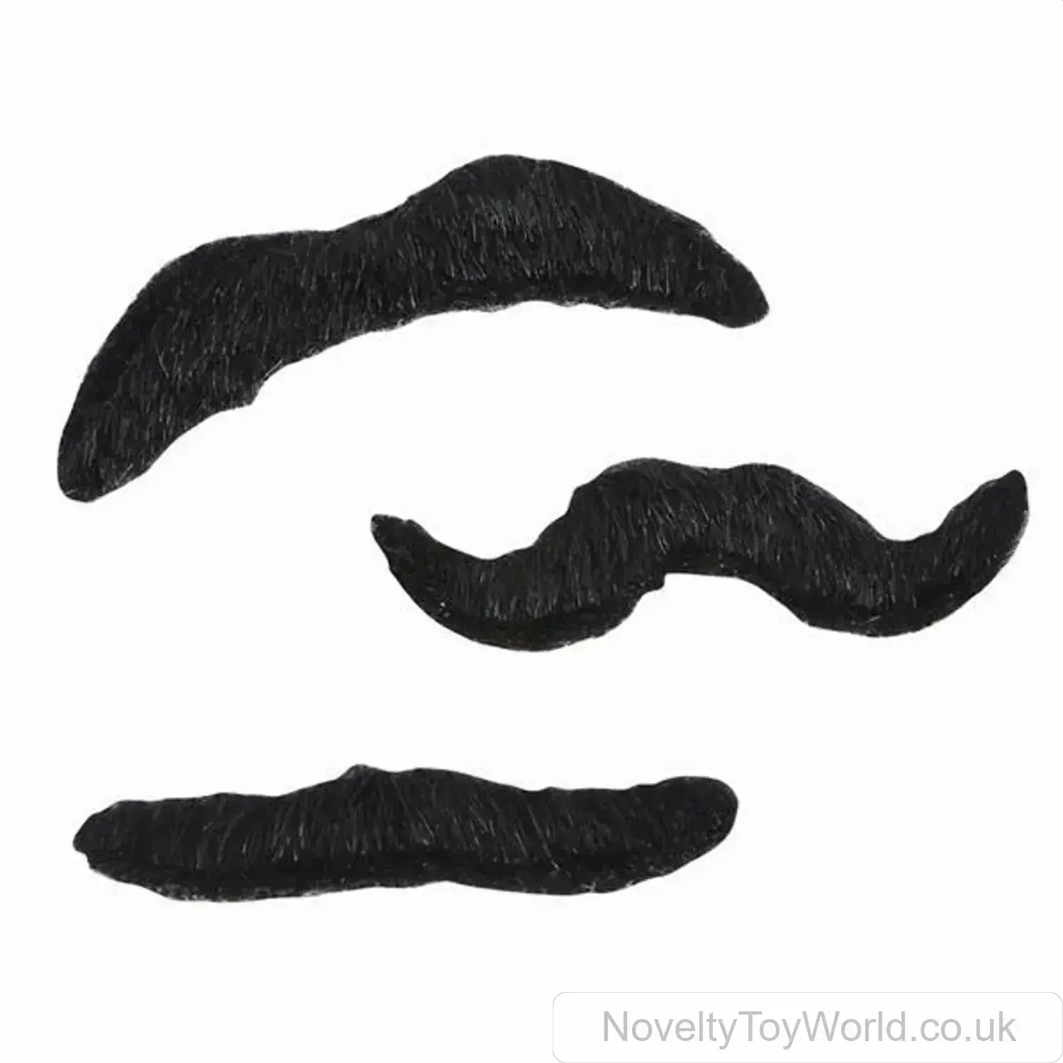 For both kids and adults, this set of 3 moustaches are great quality, looking like real hair once stuck! To attach simply peel the backing off, press on to the lip, and you're ready for party time. Each unit consists of 3 moustaches on a display card. Excellent sellers for fancy dress shops, provided at a low wholesale price. Measures 8cm across.