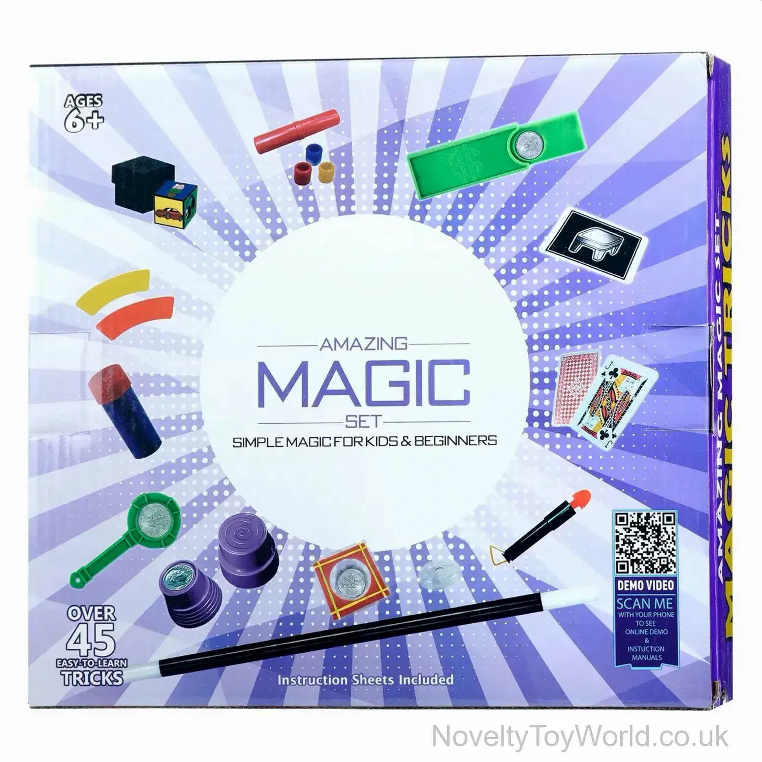 A comprehensive boxed toy set of classic magic tricks. Great gifts for budding magicians for Christmas and birthdays. These magic sets include items to enable over 45 different illusions! A fun magic toy that comes in a retail ready box.