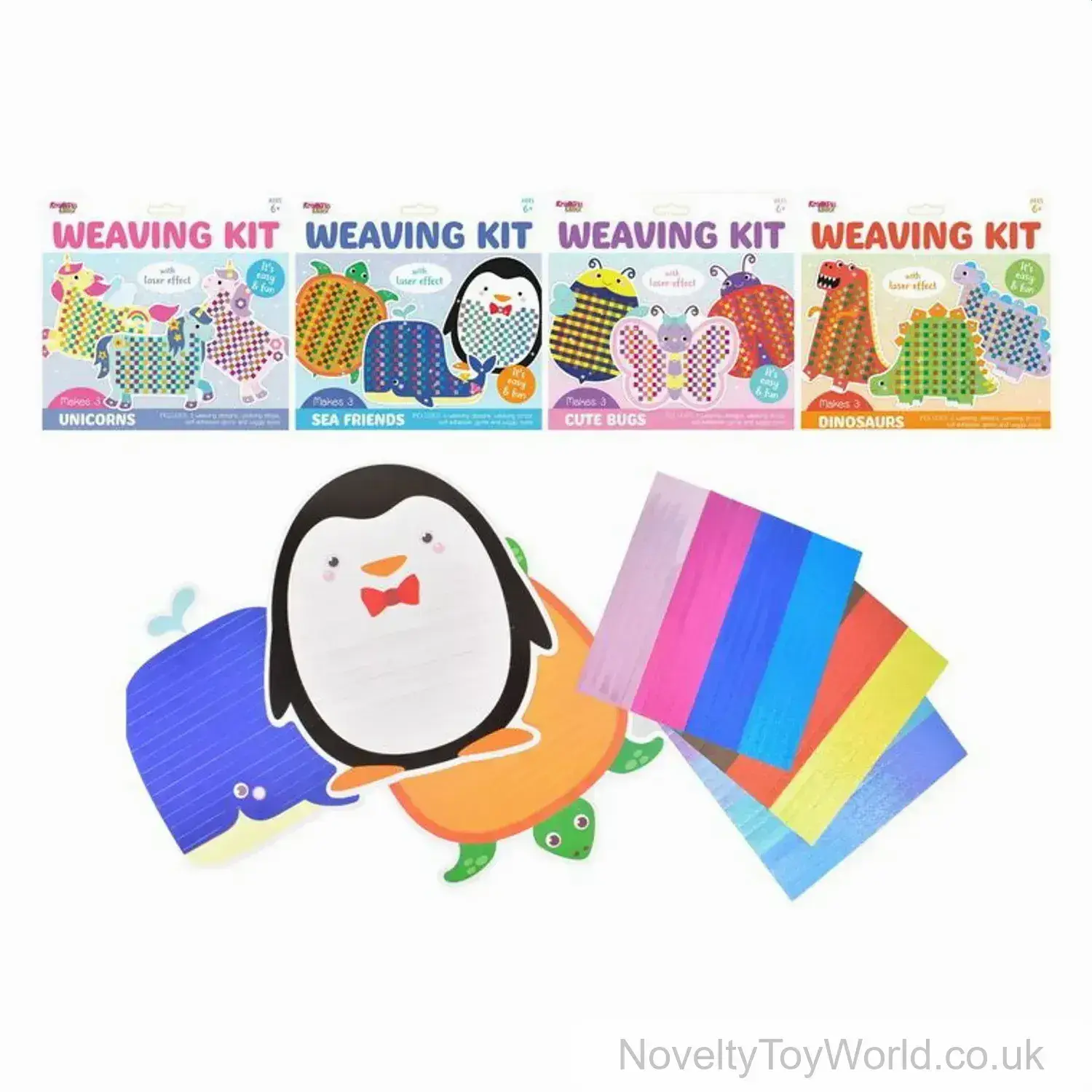 A fun weaving kit for children who love making things. These easy craft toys are a great value way to spend time on rainy days inside and are suitable for children aged 6+. Each kit includes 3 weaving designs, and is supplied in assorted Cute Bugs, Dinosaurs, Unicorns, and Sea Friends. Priced per kit.