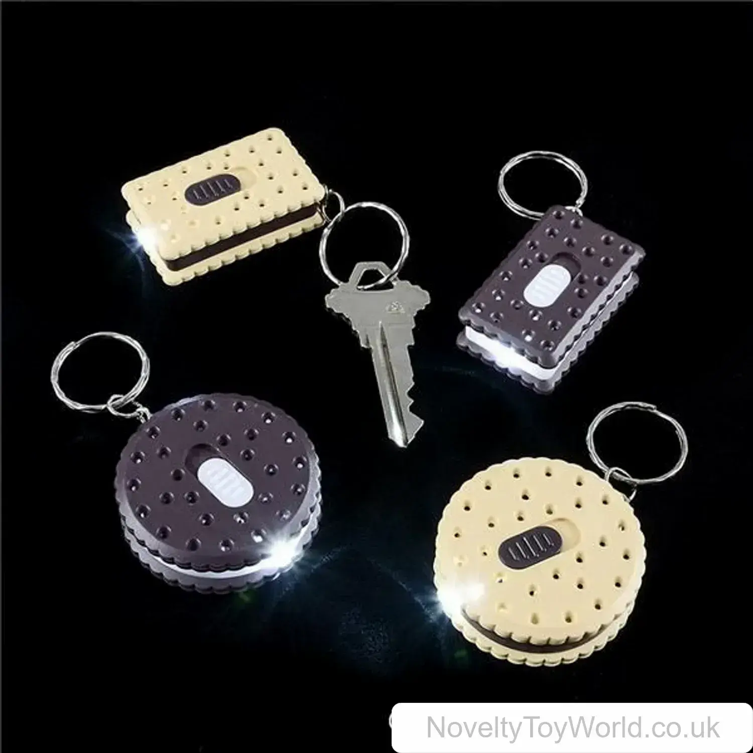 This novelty keyring comes in four different biscuit designs and colours, and includes a flick switch torch. A fun novelty item that includes batteries. Great as low cost kid's party bag fillers.