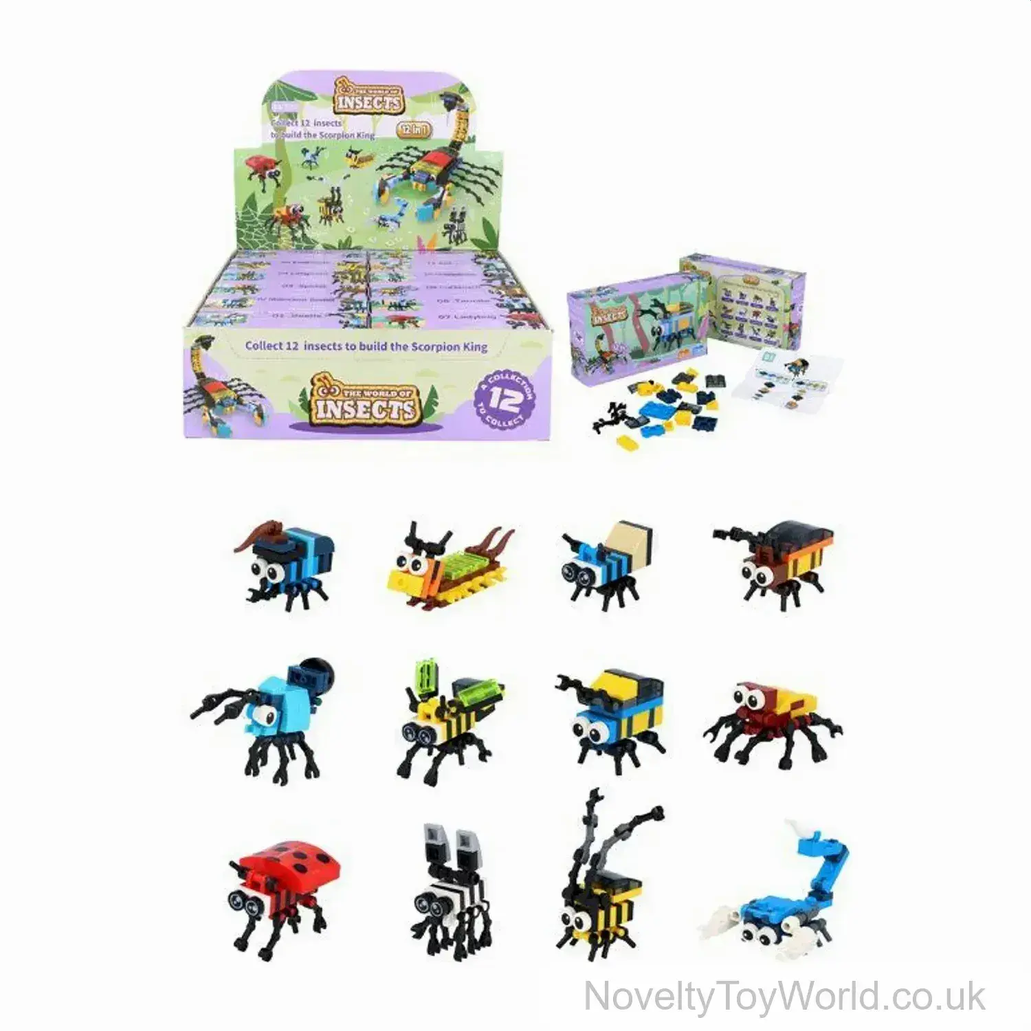 This build-your-own insect block set measures 9cm when assembled and comes in assorted designs, including beetles, bees, ladybirds, centipedes, and more. Each set contains mini building blocks and instructions, allowing you to create one of 12 different insect models. Ideal as a fun, creative activity for children and perfect for party bags or small gifts.