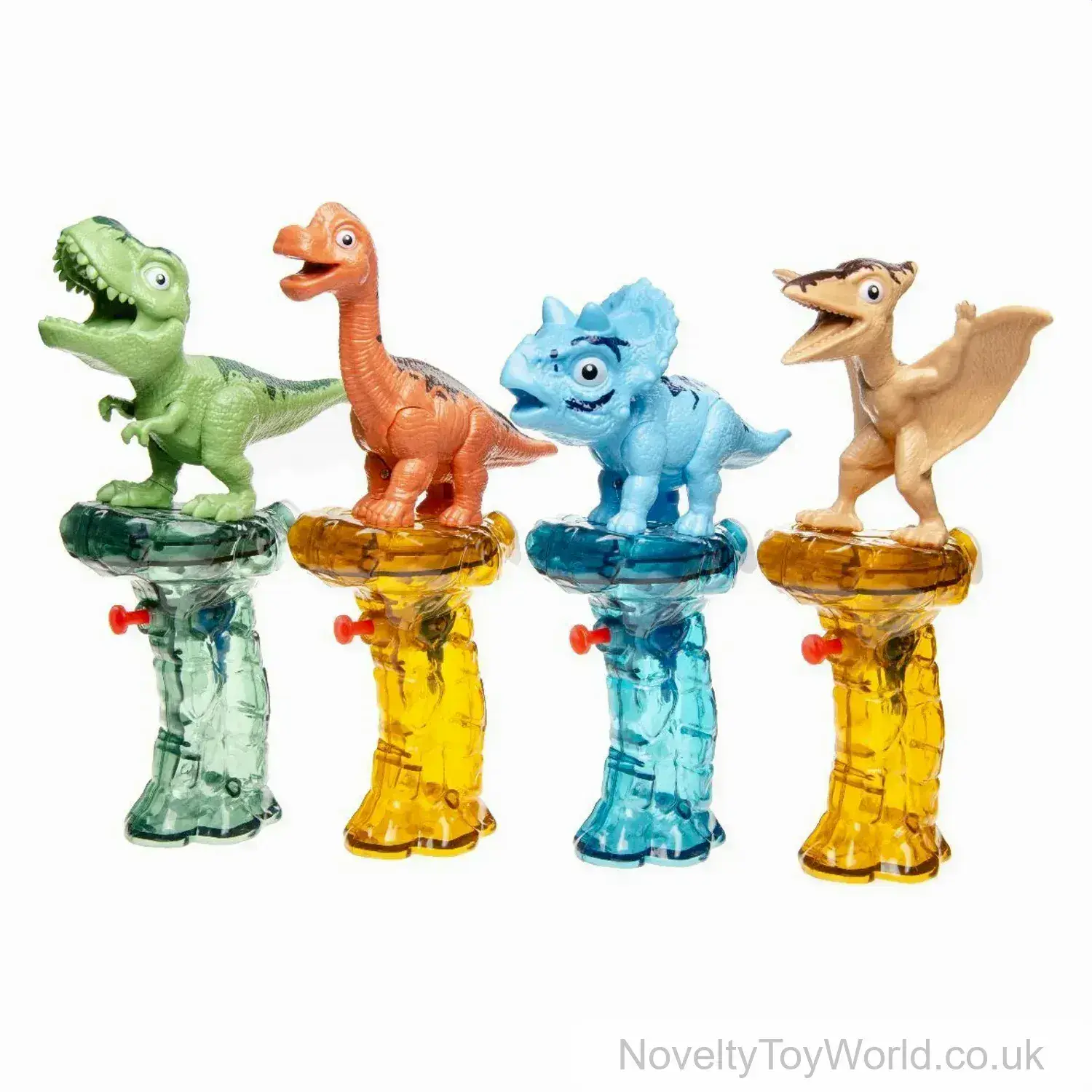 Priced per water pistol and supplied in a mix of 4 different dinosaur species - triceratops, t-rex, pterodactyl and brachiosaurus. Made of solid plastic throughout with a reservoir to easily fill with water. Simply pull the trigger and watch as the water squirts out of the dino's mouth. Presented in display case for retail sale. Dino water pistol measures 23cm tall (including reservoir).