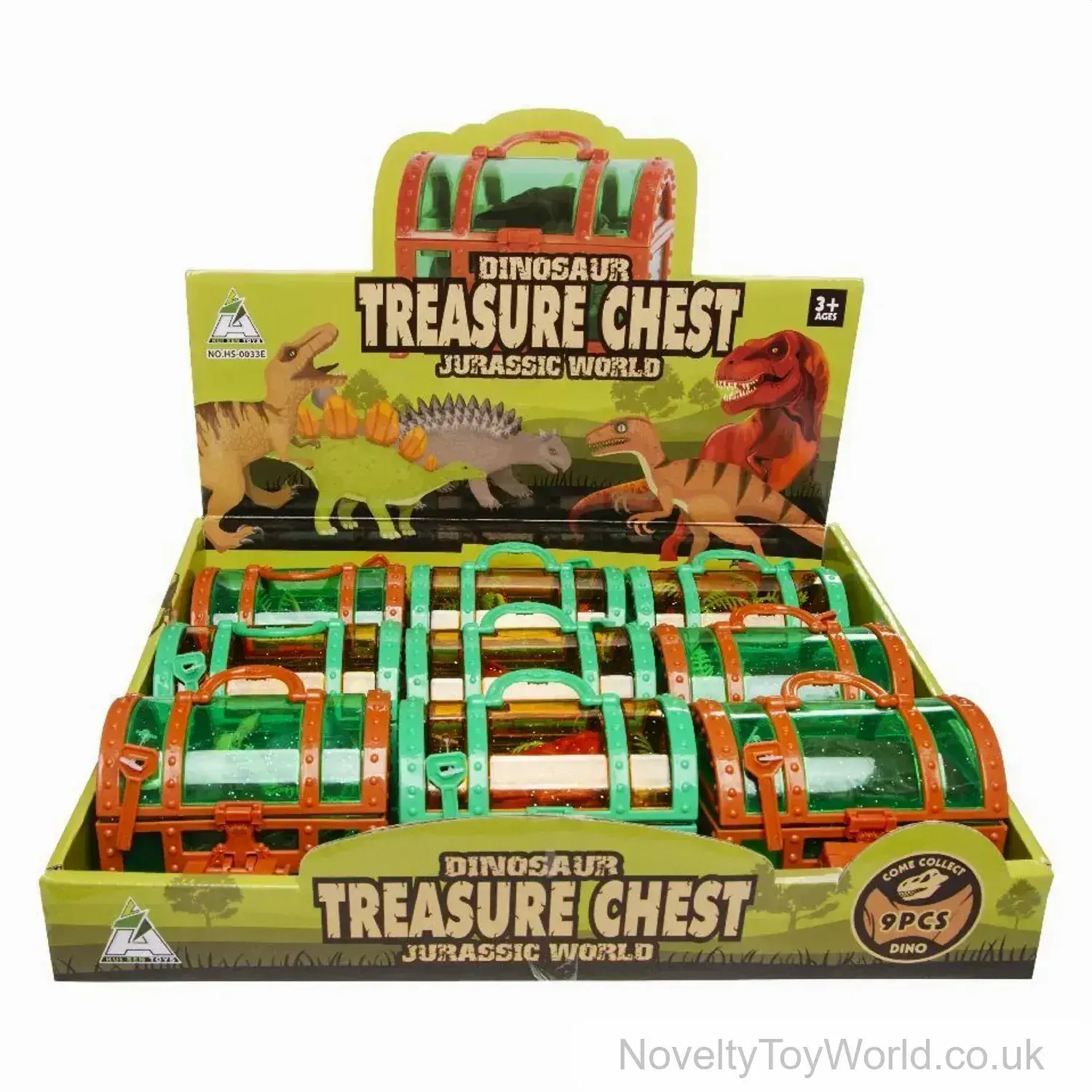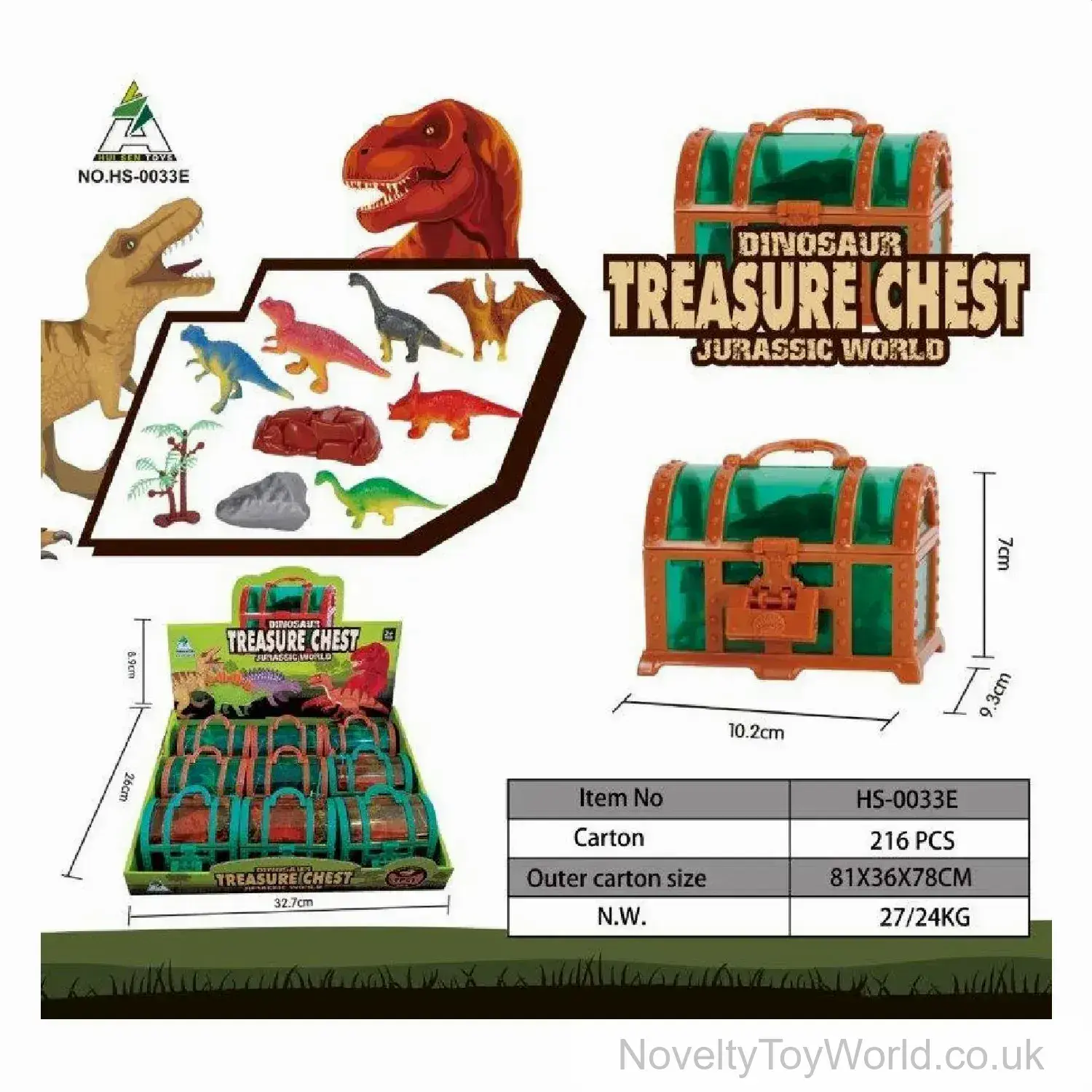 These fun little dino playsets feature a treasure chest that contains a small 9 piece dinosaur toy set. The treasure chests measure 10cm x 9cm x 7cm and are supplied in two assorted colours.