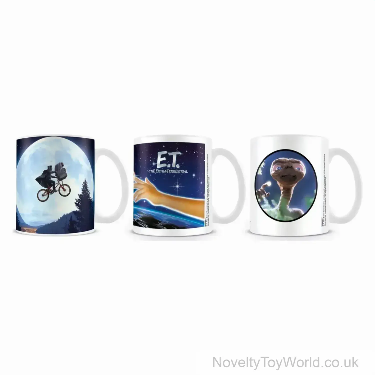 Depicting 3 iconic scenes from the movie, these assorted mugs make great low-cost gifts for fans of E.T. The Extra Terrestrial. A 325ml / 11oz everyday mug that comes in a colourful E.T. branded gift box.
