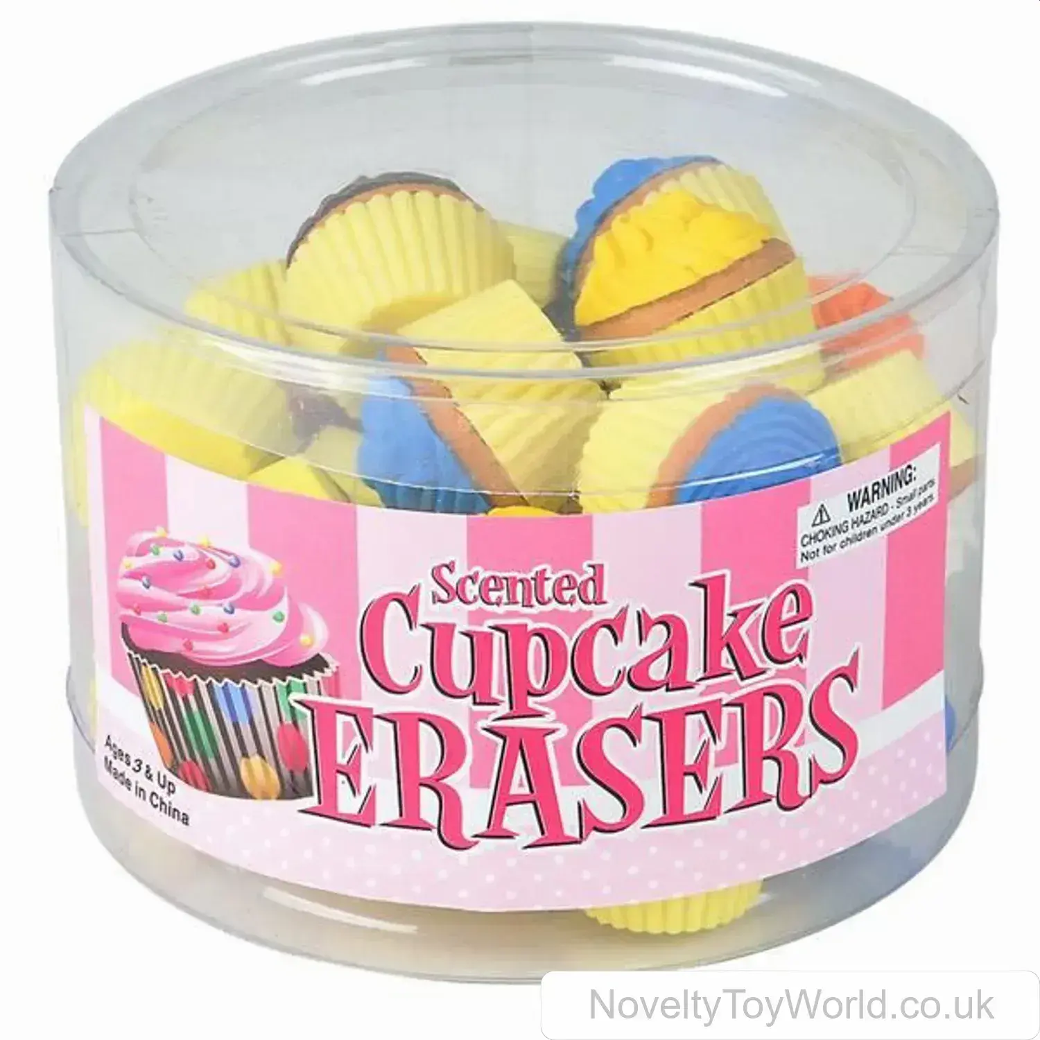 Novelty erasers in a cupcake design that are also fruit scented. Packaged in display tubs containing 24 erasers in each. A fun selection of low cost rubbers for kids, excellent as party bag fillers or inexpensive back to school stationery. From our large range of wholesale novelty stationery and erasers.