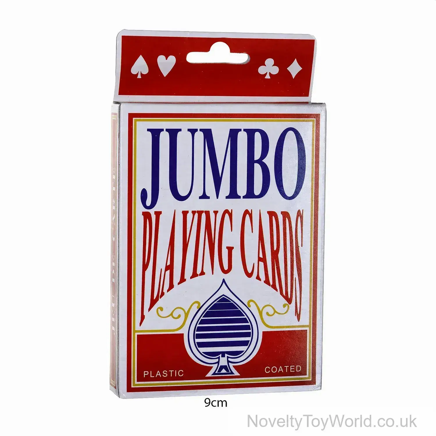 These large novelty playing cards feature a full pack of oversized playing cards, measuring 12.5cm x 9cm. A fun party novelty or low cost gift for Christmas or birthdays. Available from 24 packs wholesale.