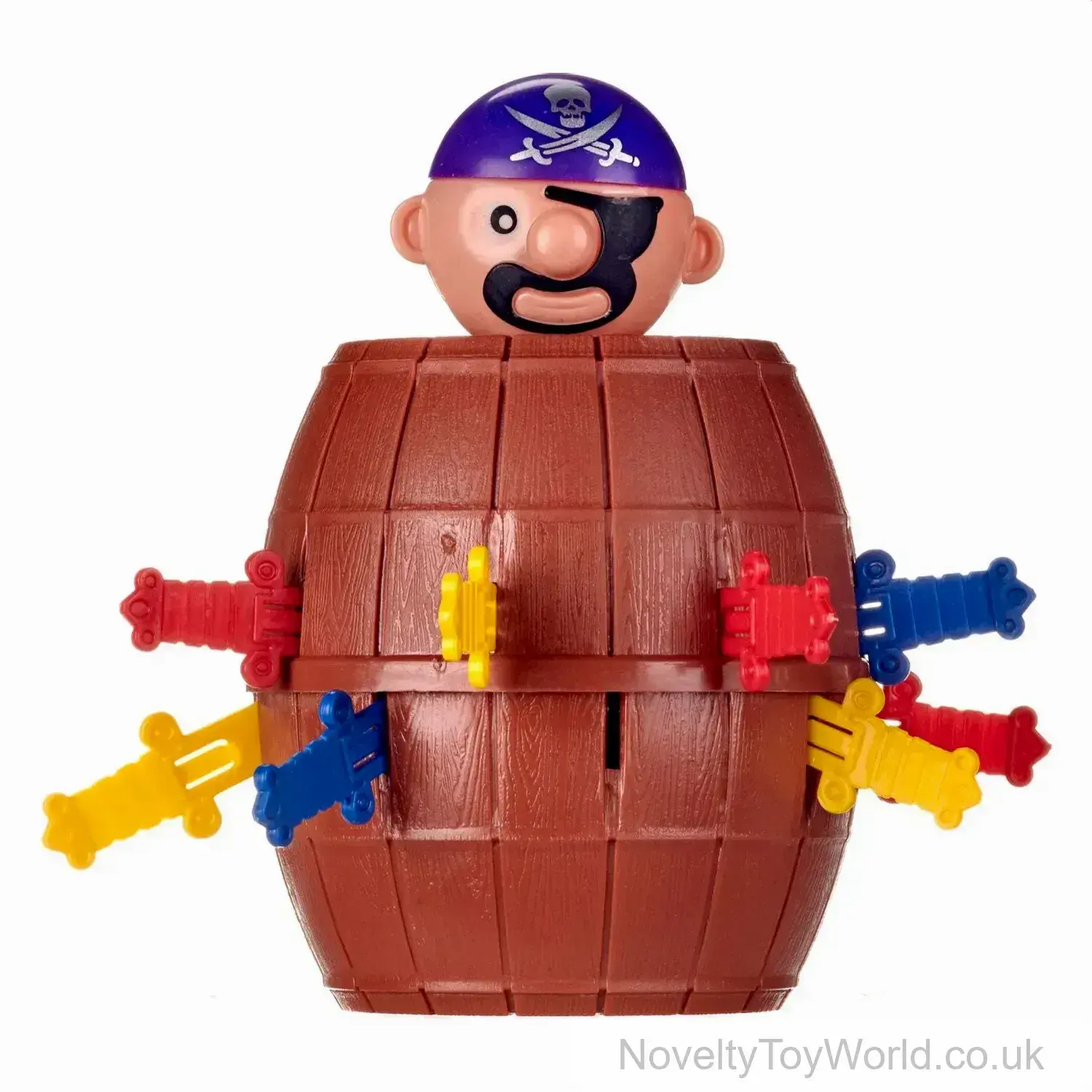 A fun quick game for all the family. Players insert plastic pirate swords into the barrel until the pirate is fired into the air! Supplied boxed.
