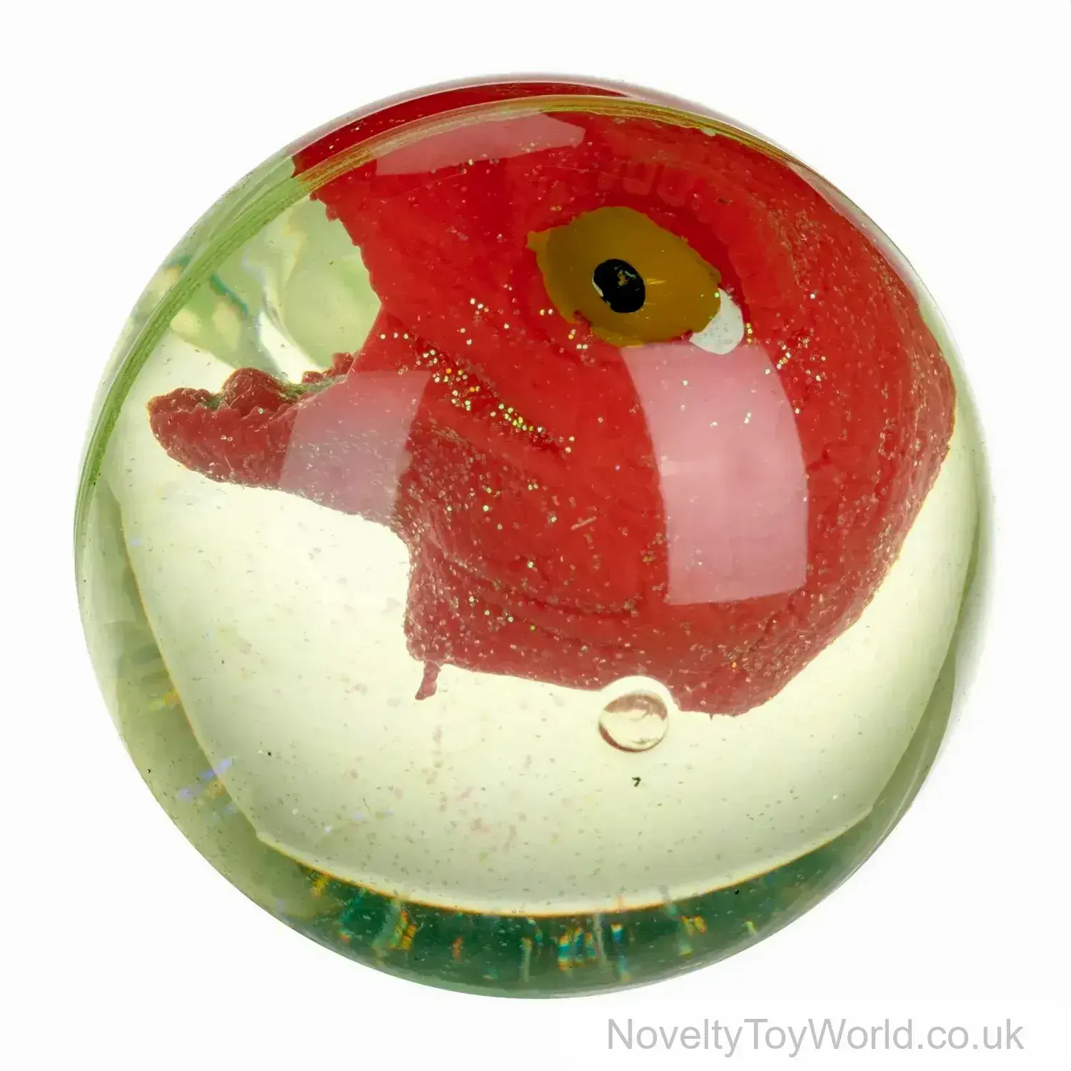 In assorted colours, these creepy dinosaur balls each contain a little dinosaur head covered in a clear goo. Once thrown, bounced or rolled, these balls light up and flash. Batteries included. Presented in display box for gift shop stands.