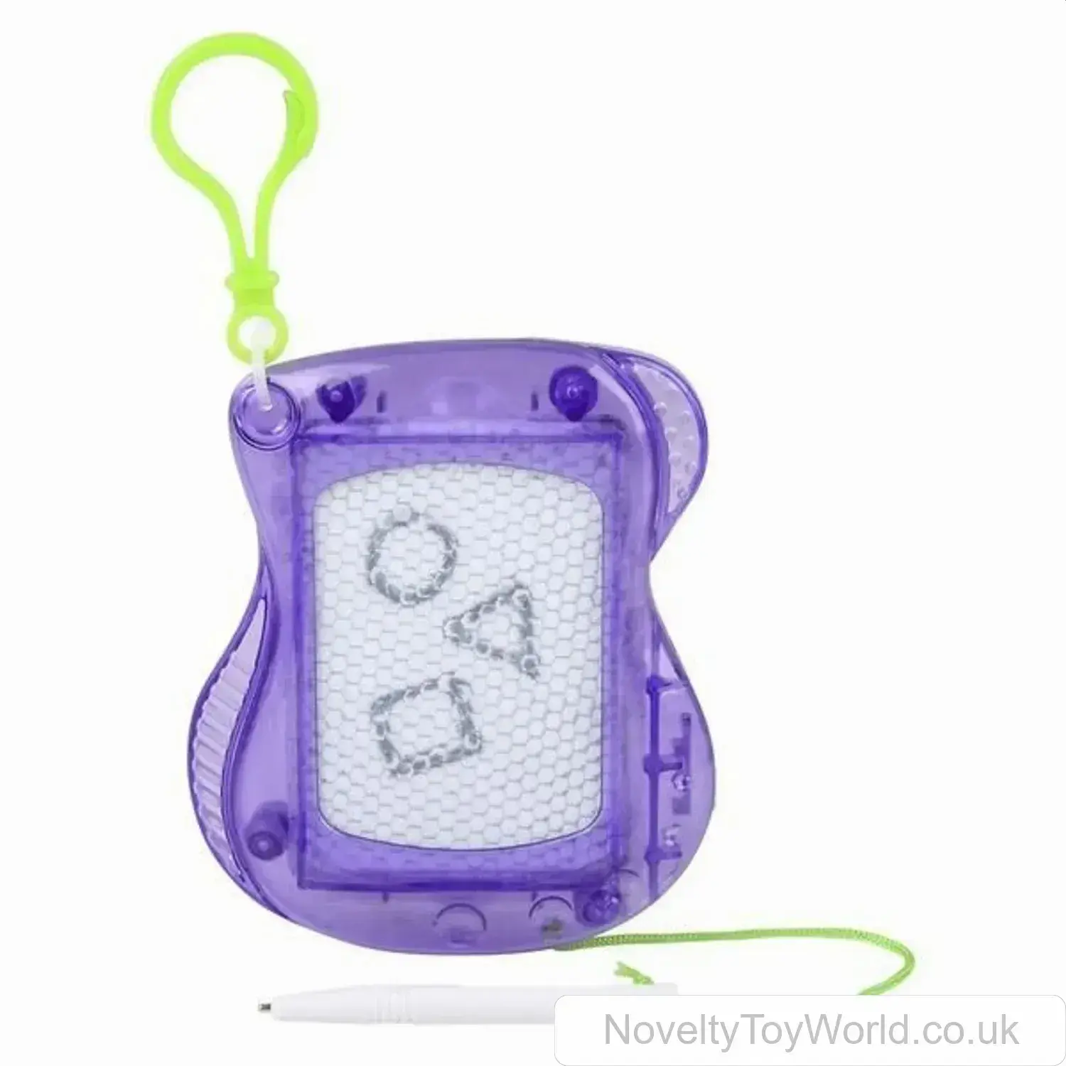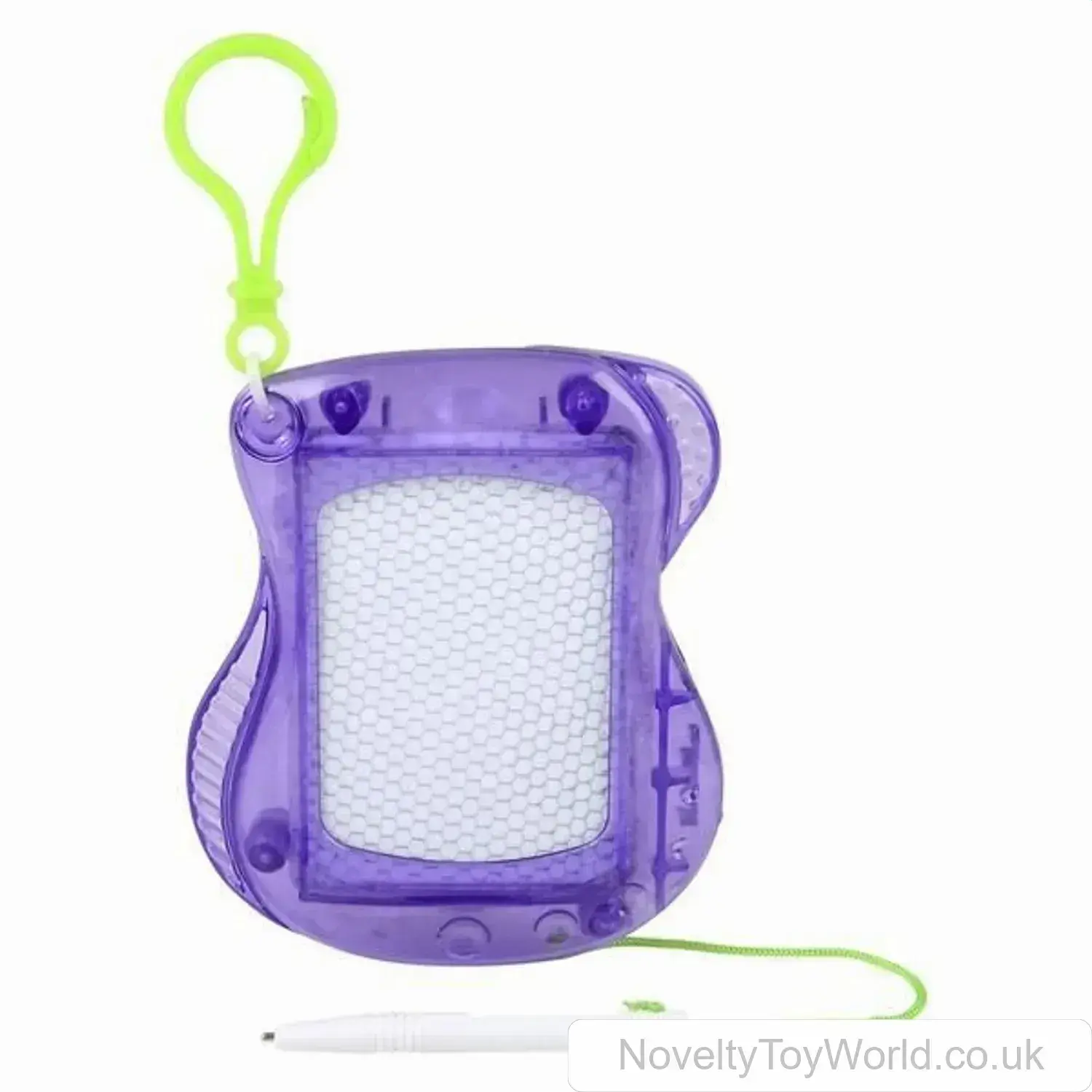 An interesting novelty keyring that features a working sketch drawing board. Comes in assorted colours and measures 10cm. Supplied inside attractive retail packaging for shop displays. A fun stationery pocket money toy for children. From our range of wholesale novelty keyrings.
