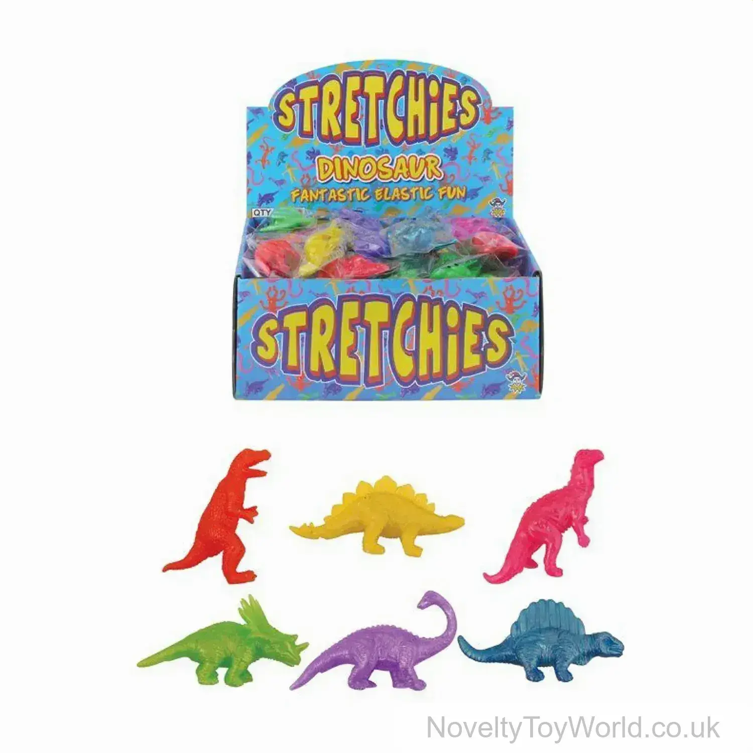 A superb stretchy toy supplied in an assortment of different dinosaurs and colours. Each dinosaur measures 6cm long, making fun sensory toys for kids. Supplied at a low bulk buy price making them ideal for party bag fillers.